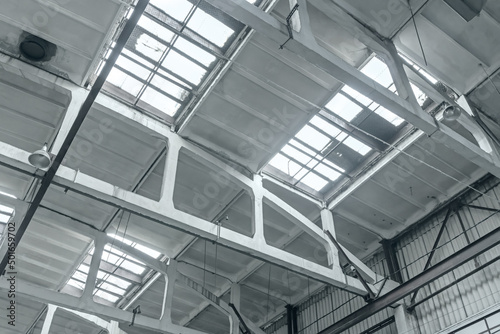 roof, ceiling, interior, industry, architecture, modern, inside, metal, frame, beam, truss, structure, construction, industrial, building, background, steel, iron, hangar, empty, warehouse, light, work, perspective, factory, plant, indoor, storage, storehouse, store, urban, large, scene, view, distribution, safety, equipment, window, skylight, rafter, roofing, concept, space