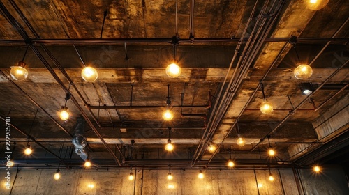 ceiling, light, industrial, ambience, pipe, design, architecture, interior, warm, space, structure, illumination, decor, modern, urban, texture, contrast, aesthetic, environment, construction, material, energy, style, retro, vintage, cosy, creative, atmosphere, renovation, minimalism, functionality, layout, fixture, craftsmanship, shadow, line, visual, urbanity, loft, workspace, setting, element, lighting, rustic, attracted, character, charme