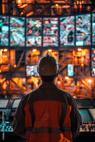 Industrial Concept: Industrial overseer controlling mine operations from a high - tech control room