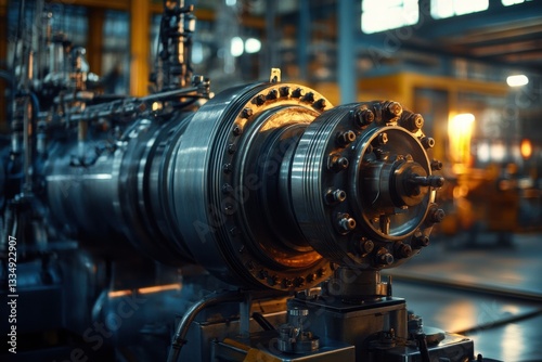 Industrial Engine Component in Manufacturing Facility with Focused Lighting and Detail