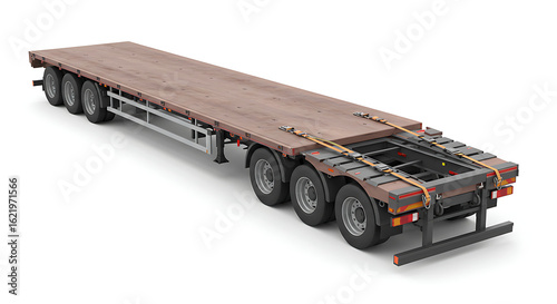 Industrial Flatbed Semi-Trailer on White Background for Heavy Cargo Transport