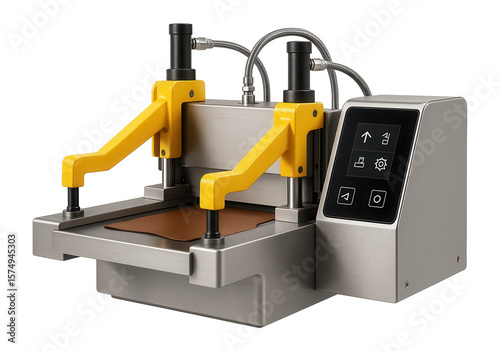 Industrial leather cutting machine with a pneumatic clamping system and programmable settings for a luggage manufacturing facility