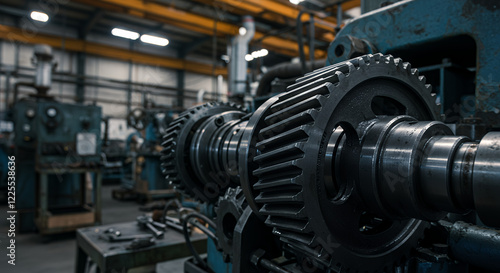 Industrial Machinery Close-Up: Powerful Gears and Precision Engineering in a Factory Setting