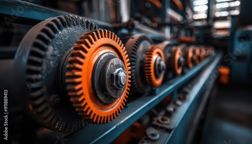 Industrial machinery, vibrant colors, close-up, industrial setting, detailed