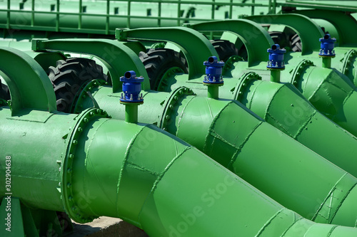 Industrial pipes used to pump water from a river to irrigate drought fields
