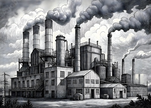 Industrial Power Plant Steam Energy Production Machinery Emission Pollution Factory