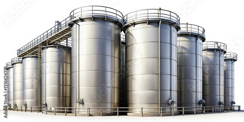Industrial Storage Tanks: Rows of large metal tanks outdoors under a partly cloudy sky.