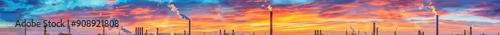sunset, sky, cloud, industrial, factory, chimney, smog, pollution, silhouette, landscape, nature, environment, urban, atmosphere, colourful, dramatic, gold, red, orange, blue, pink, purple, twilight, evening, horizon, light, heat, flames, smoke, steel, tower, tall, structure, power, plant, energy, manufacturing, industrialized, heavy, industry, panorama, wide, angle
