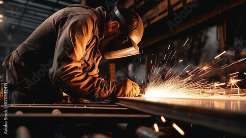 cutting, metal, spark, heavy machinery, welding, workplace, safety-gear, protective clothing, manufacturing, fabrication, steel, equipment, precision, metalworking, engineering, sparkling, temperature, intense, tool, craftsmanship, flames, skill, mechanical, helmet, fire, factory, professional, manual labor, risk