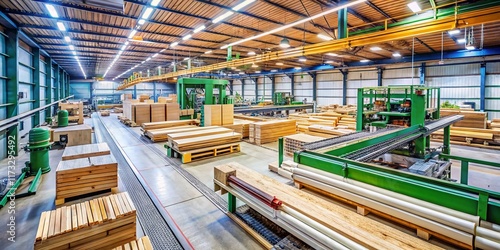 Industrial Woodworking: Automated Timber Processing Line with Sawing, Planing, and Dust Collection