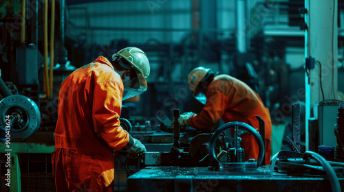 safety-gear, machinery, workshop, teamwork, precision, manufacturing, engineering, labor, production, factory, craftsmanship, mechanical, industry, tool, hard work, assembly line, industrial, cooperation, construction, collaboration, fabrication, workplace, metalwork, industrious, assembly
