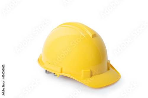 Industrial workers or construction site safety equipment.Yellow safety helmet isolated on white background