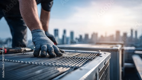 Industrial Workwear Composition Featuring Gloved Tradesman in Pristine Factory – Tactile Visual for Inclusive Design and Digital Wellness Branding