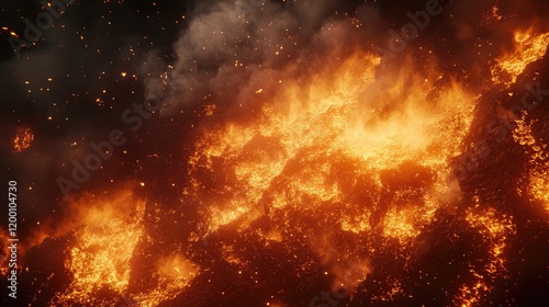 fire, blaze, inferno, flames, burning, ember, heat, smoke, intense, destruction, wildfire, combustion, energy, hot, orange, red, night, dark, dramatic, fiery, glowing, cosmic, apocalyptic, volcanic, magma, lava, hellish, hell, disaster, calamity, catastrophy, firestorm, conflagration, pyrotechnic, furnace, infernal
