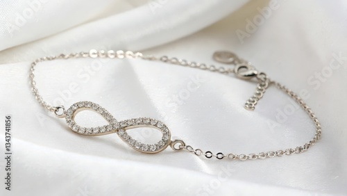 bracelet, forever, silver, jewellery, chain, charme, white, fabric, fashion, accessory, elegant, delicate, sparkle, shine, crystal, stone, detail, closeup, macro, smooth, texture, ornate, design, style, woman, girl, gift, present, luxury, metal, link, clasp, adornment, shimmer, gleam, minimalist