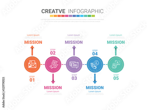 Infographic design template with numbers 5 option can be used for workflow layout, diagram, number step up options.