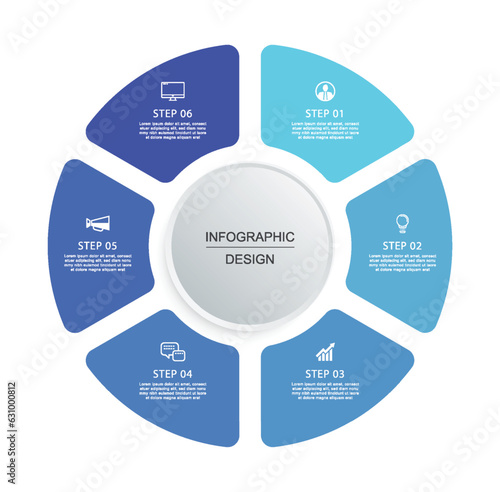 Infographics circle timeline with 6 number data template. Vector illustration abstract background.
