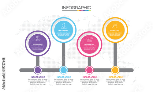 Infographics design 4 steps with marketing icons can be used for workflow layout, diagram, annual report, web design.