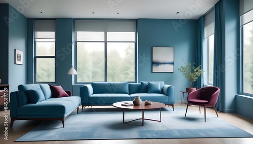 interior, blue, wall, ascetic, poster, rug, pattern, modern, indoor, domestic, cobalt, home, lifestyle, apartment, architecture, design, bohemian, new, minimalist, house, flat, pattern, style, bright, orient, decoration, flooring, simple, light, decor, minimalism, copy space, floor, stylish, furniture, room, estate, trendy, fashion, idea, inspiration