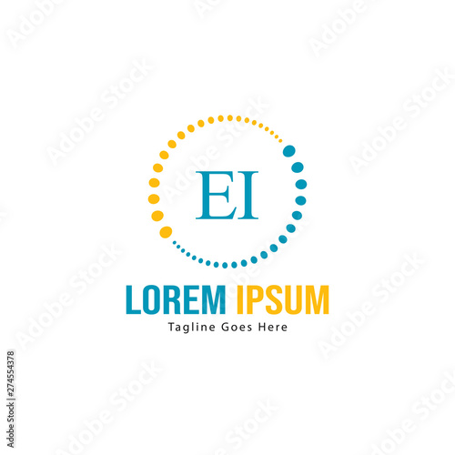 Initial EI logo template with modern frame. Minimalist EI letter logo vector illustration