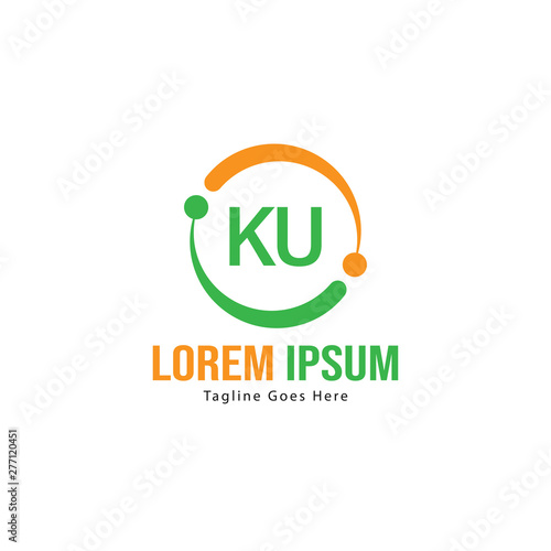 Initial KU logo template with modern frame. Minimalist KU letter logo vector illustration
