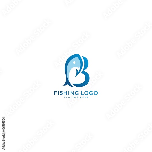 Initial letter B logotype. Minimalist fish logo concept, fit for fishing, seafood restaurant, packaging or ocean traveling. Illustration vector logo.