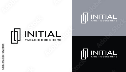Initial Letter I Monogram With Simple Rectangle Line Art Logo Design