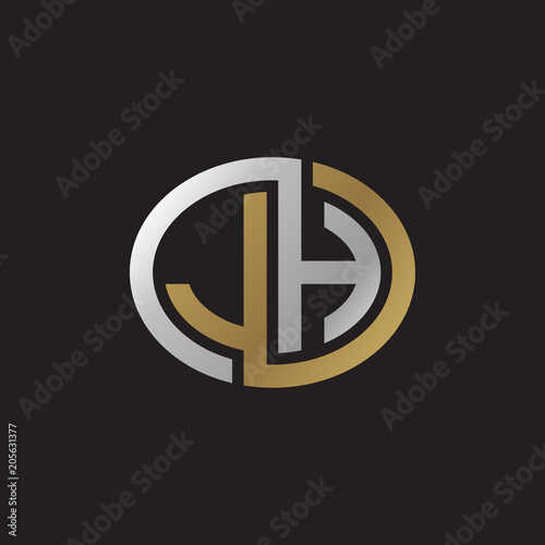 Initial letter JH, looping line, ellipse shape logo, silver gold color on black background
