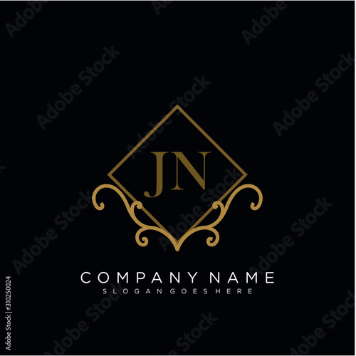 Initial letter JN logo luxury vector mark, gold color elegant classical