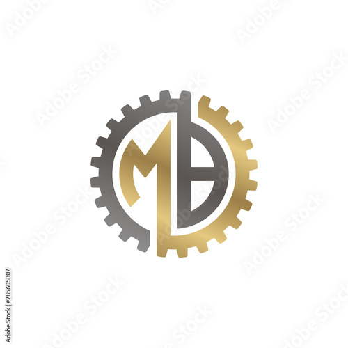 Initial letter M and B, MB, interlock cogwheel gear logo, black gold on white background