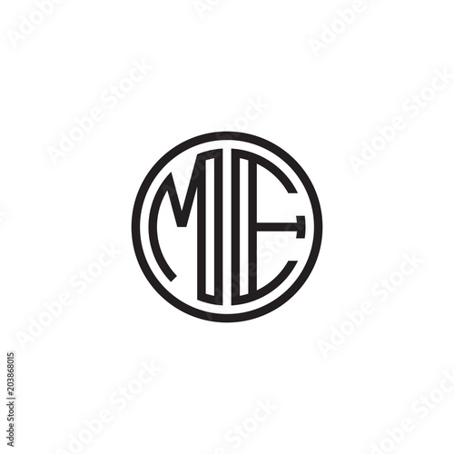 Initial letter ME, minimalist line art monogram circle shape logo, black color