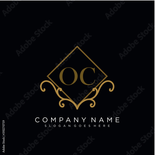 Initial letter OC logo luxury vector mark, gold color elegant classical