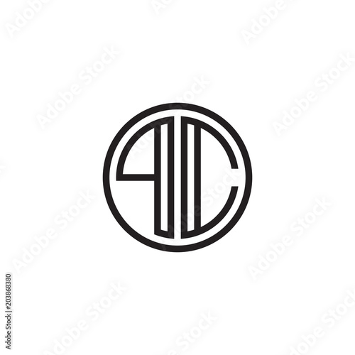 Initial letter PC, minimalist line art monogram circle shape logo, black color