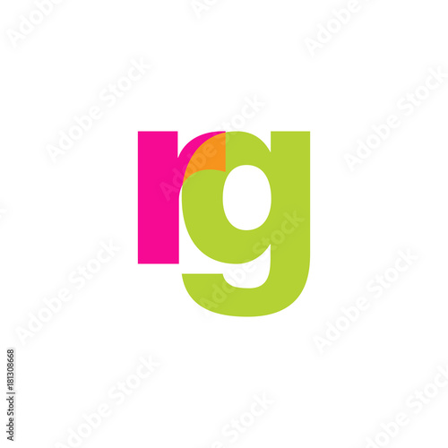 Initial letter rg, overlapping transparent lowercase logo, modern magenta orange green colors