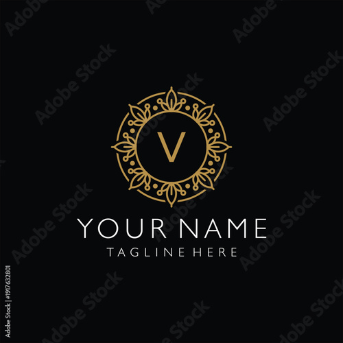 Initial letter V beauty mandala ornament pattern circle logo design