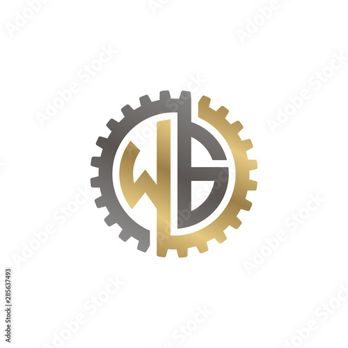 Initial letter W and G, WG, interlock cogwheel gear logo, black gold on white background