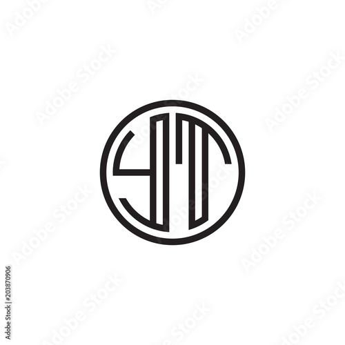 Initial letter YT, minimalist line art monogram circle shape logo, black color