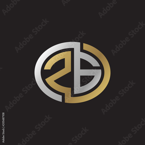 Initial letter ZG, looping line, ellipse shape logo, silver gold color on black background