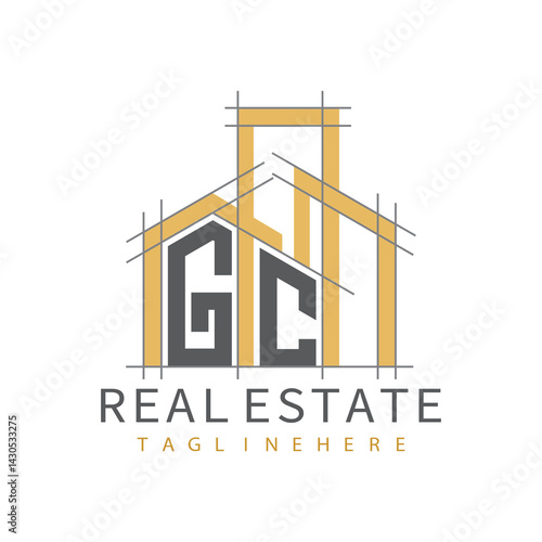 initial monogram logo for real estate with Home and Building shape creative design.