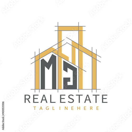 initial monogram logo for real estate with Home and Building shape creative design.