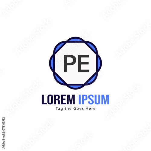 Initial PE logo template with modern frame. Minimalist PE letter logo vector illustration