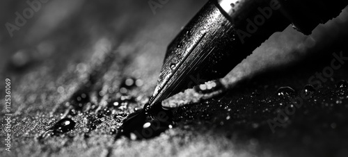 pen, ink, writing, paper, dripped, black, white, monochrome, closeup, macro, photo, still life, texture, detail, nib, metal, surface, liquid, dark, shadow, contrast, grain, art, design, image, photo, picture, graphic, visual, composition, aesthetic, style, artistic, elegant, classic, vintage, illustration, abstract, sharpened, depth