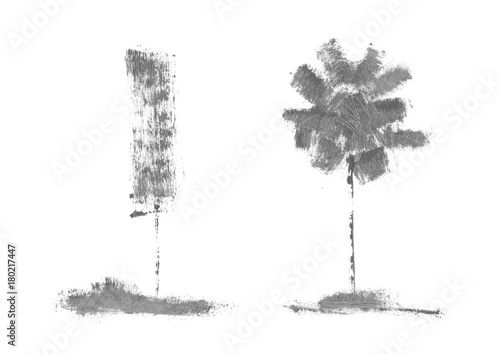 Ink mascara illustrations of trees with natural texture grunge mascara.