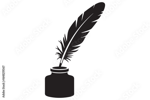 Ink pot pen feather silhouette vector illustration isolated on white background