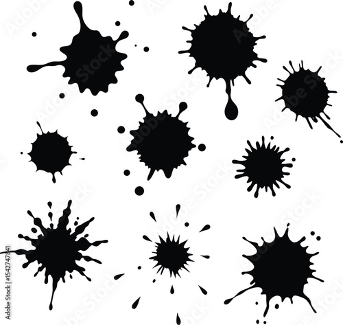 splash, drop, texture, background, design element, abstract, grunge, artistic, vector, black-and-white, illustration, graphic design, set, collection