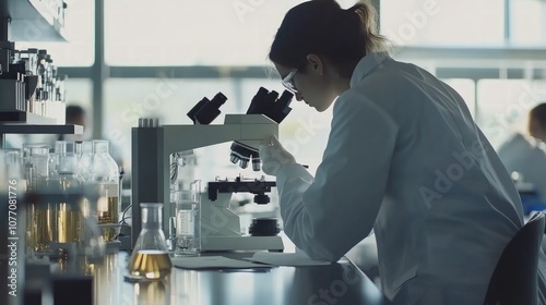 Innovative Laboratory Experiments, scientists engaged in cutting-edge research, utilizing sophisticated microscopes and analytical machines in a state-of-the-art facility