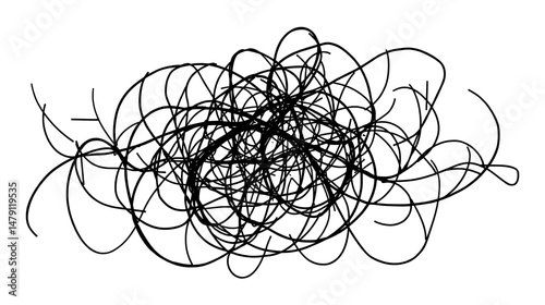 Insane messy black line, complicated clew way. Simplifying confusion. Tangled scribble path. Simplification chaotic difficult proces, template. Vector illustration