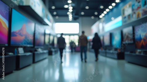 television, sale, showcase, choice, buyer, bokeh, assortment, shopping, people, household, appliance, modern, large, motion, blurred background, demonstration, purchase, window, interior, table, defocused, art, new, blur, reflections, floor, business, center, urban, walk, architecture, light, walking, mall, building, hall