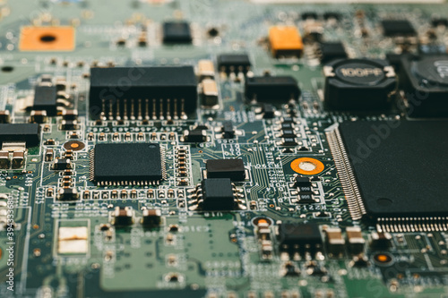 Inside of electronic device. Digital and computer repair concept. Modern electronic components concept.