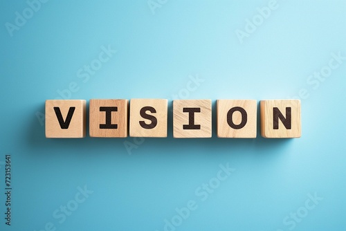 inspiration, strategy, wooden blocks, vision, motivational, foresight, planning, success, simplicity, leadership, typography, growth, innovation, alignment, progression, clarity, presentation, versatile, blue background, negative space, impact, workshop
